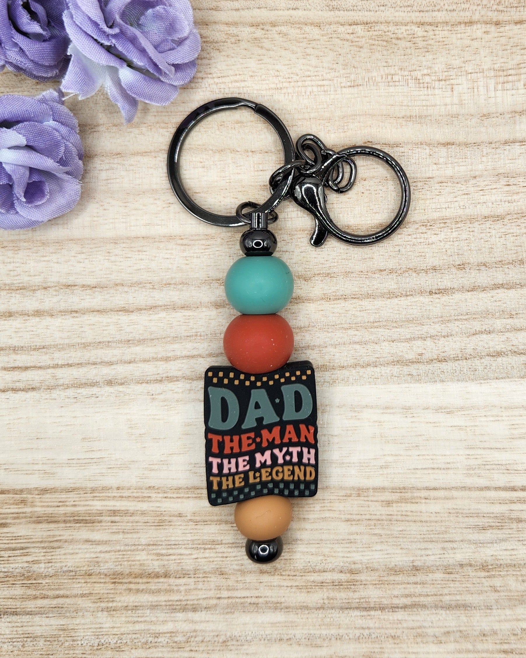 Metal bar keychains with keyring and lobster clasp, beaded with silicone beads. Can be used as keychains, bag clips or zipper pulls.
